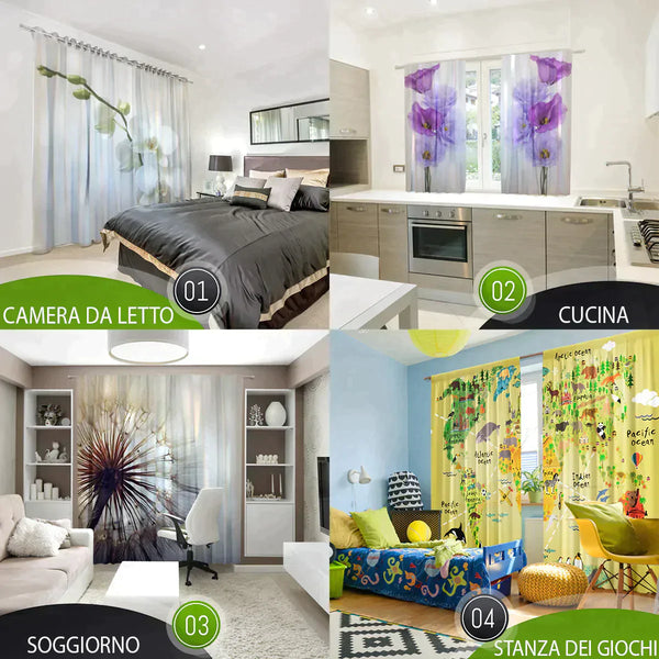 Le tende Wellmira 3D sono tende incredibilmente belle con una stampa tridimensionale e realistica. Contribuiranno a creare un’atmosfera unica in casa. Con le tende con stampa si potrà facilmente cambiare gli interni e aggiungere qualcosa di speciale alla stanza. Le nostre tende illustrate sono prodotte nell’Unione Europea e sono fatte di poliestere di alta qualità.