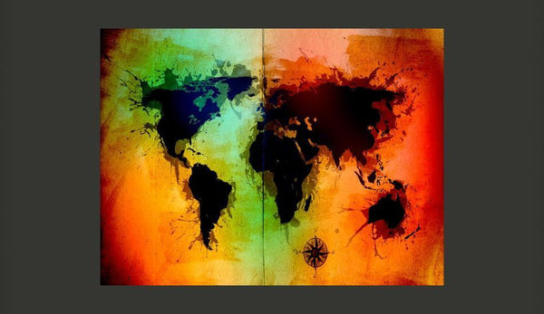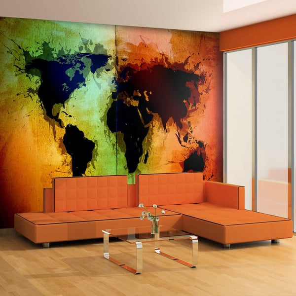 Carta da parati mappamondo - Continenti neri, oceani colorati