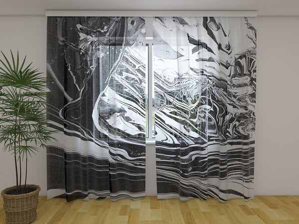 Foto Tende con Stampa Astrazione Bianco Nera con Velatura