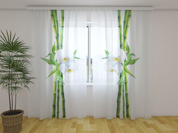 Foto Tende con Stampa Bambù e Orchidea Bianca