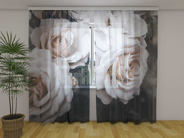 Foto Tende con Stampa Belle Rose Pastello in Giardino
