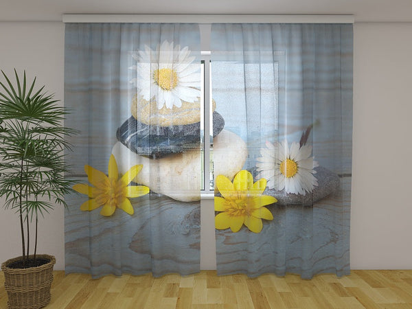 Foto Tende con Stampa Camomille e Pietre