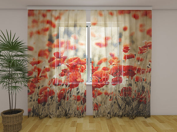 Foto Tende con Stampa Campo di Papaveri Retrò