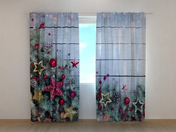 Foto Tende con Stampa Decorazione Natalizia Di Rami Di Abete e Stelle