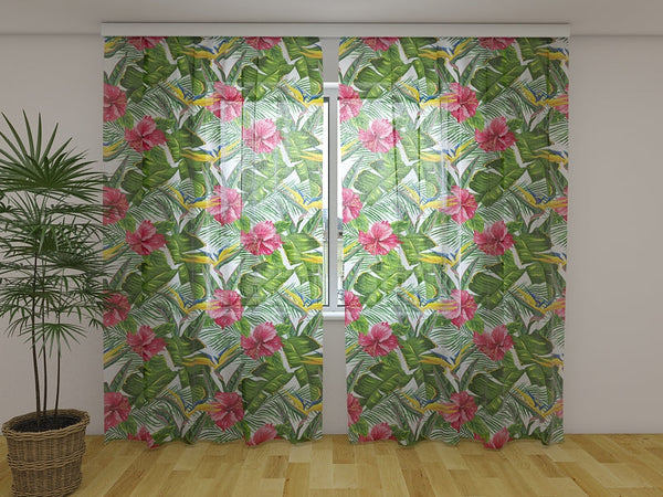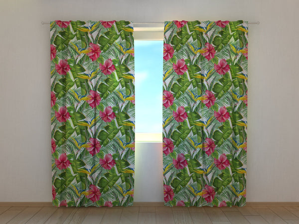 Foto Tende con Stampa Foglie Tropicali e Strelitzia