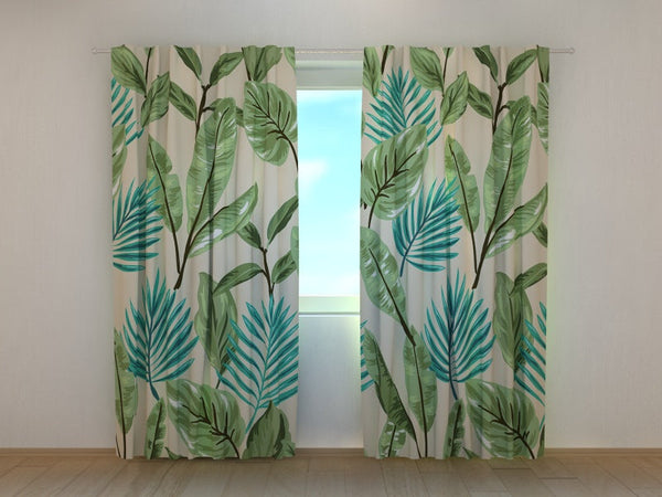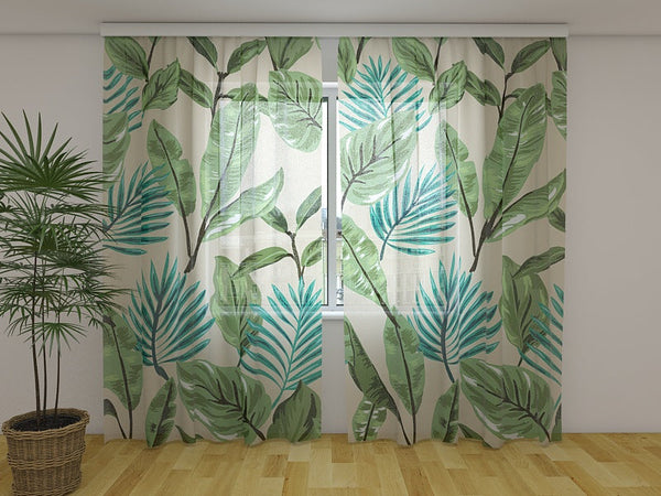 Foto Tende con Stampa Foglie Verdi