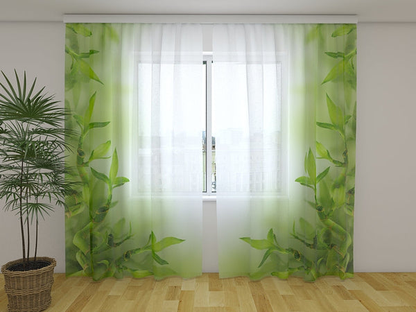 Foto Tende con Stampa Foglie Verdi di Bambù