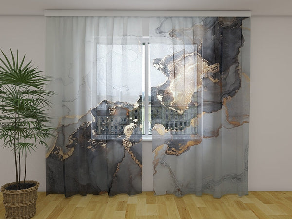 Foto Tende Lussuoso Marmo in Nero, Grigio e Oro