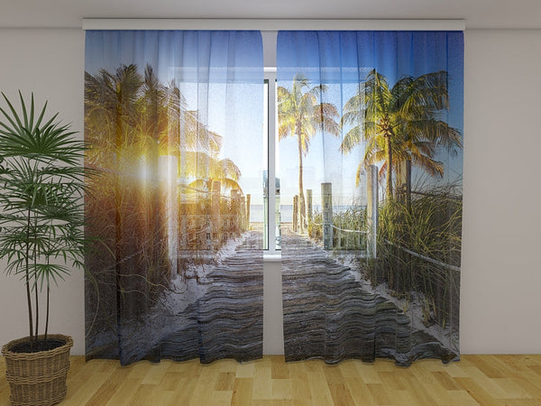 Foto Tende Sentiero di Legno alla Spiaggia al Tramonto