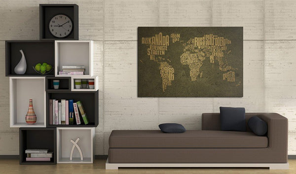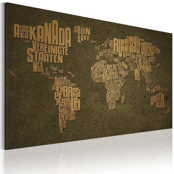 Quadro mappamondo - La mappa del mondo in lingua tedesca: continenti colore beige