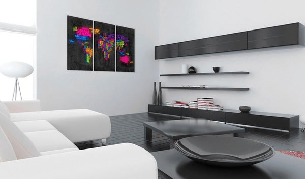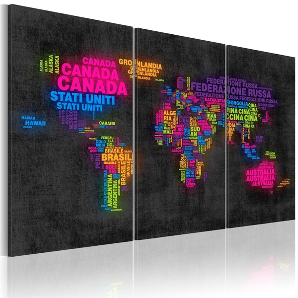Quadro mappamondo - Mappa del mondo: nomi italiani di stati (trittico)